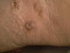 Mucocutaneous lesions may be treated simply by 10 percent aluminium acetate or 1:8000 potassium permanganate compresses to dry the lesions .